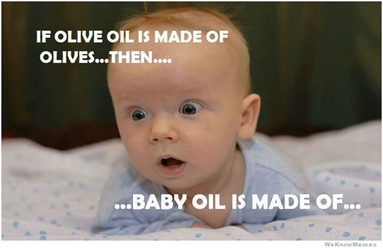 If olive oil comes from olives, where does baby oil come from?